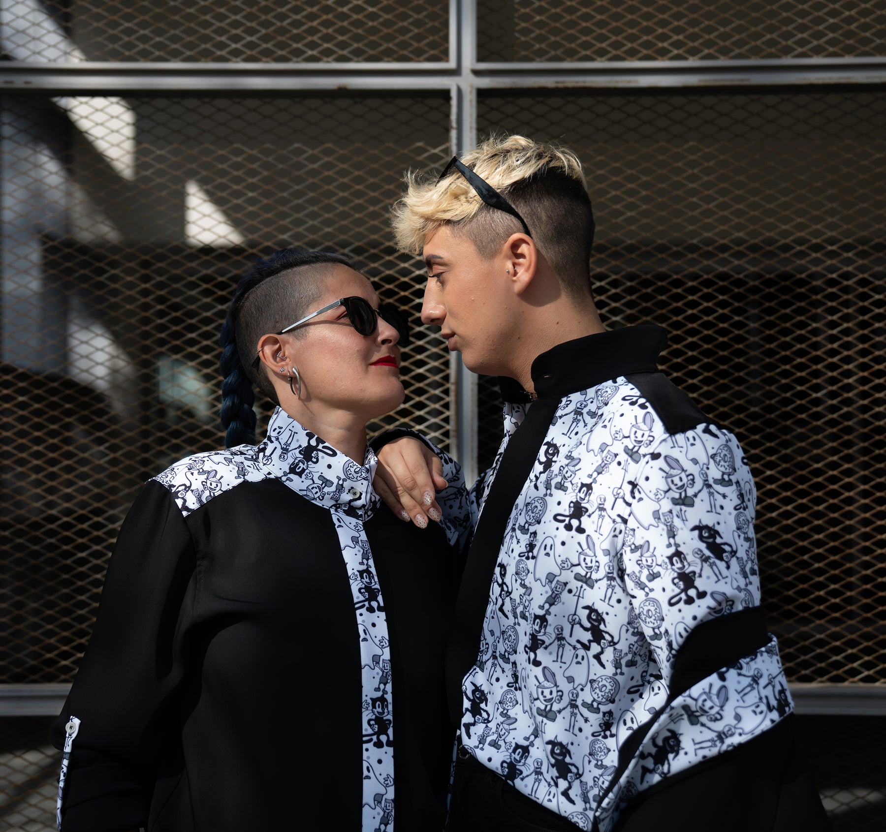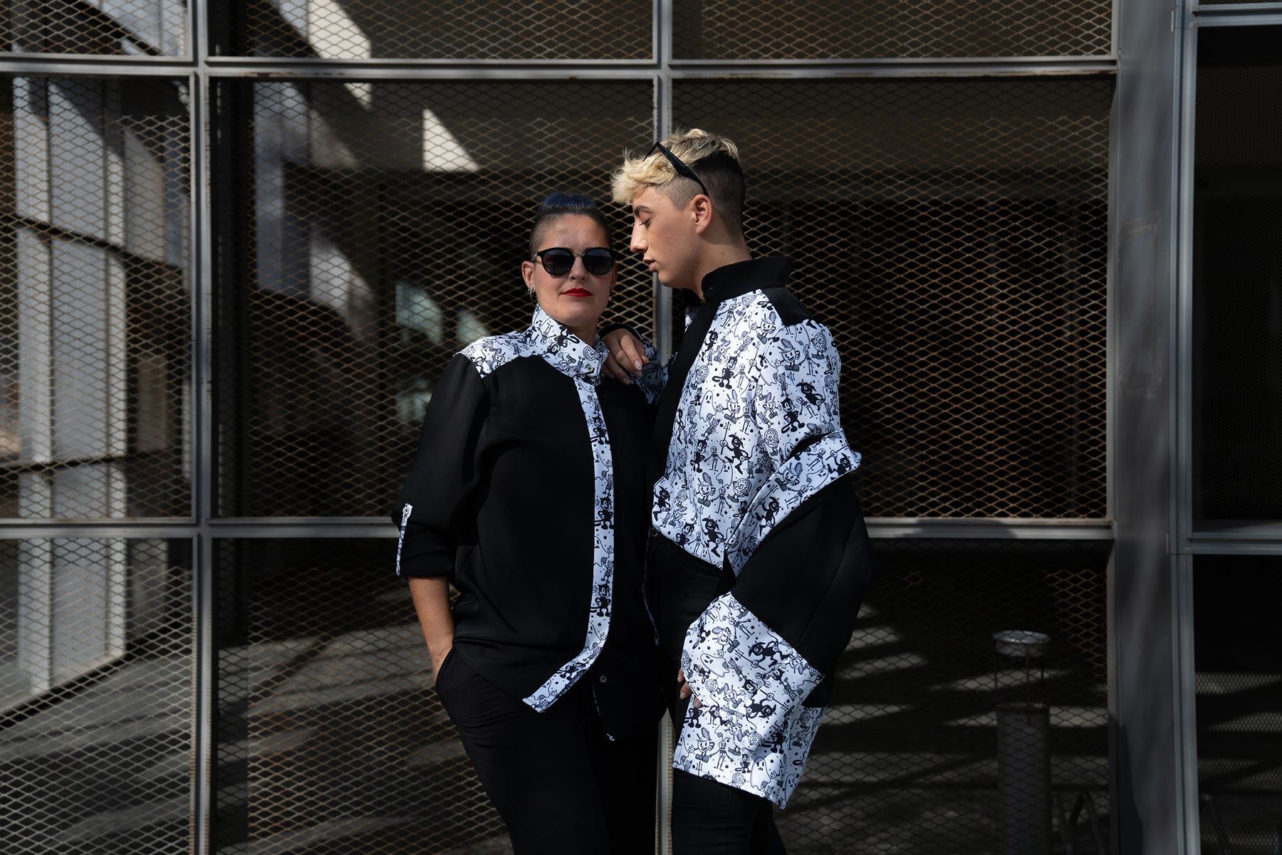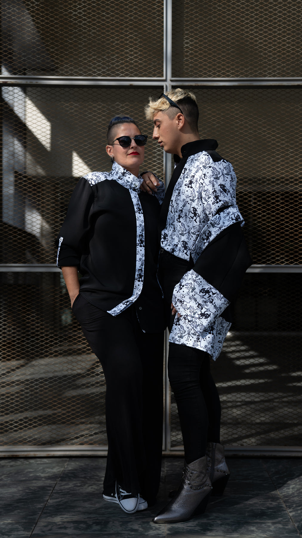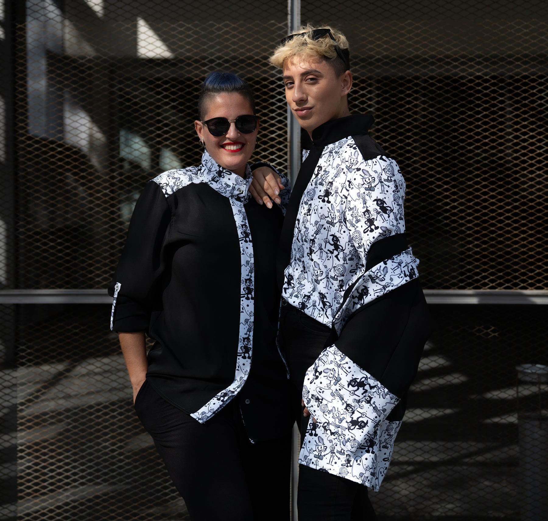 🖤 Negro profundo con detalles en animación, ideal para un estilo sobrio y sofisticado. ⚪ Negativo en detalles pero print principal blanco de animación retro, una interpretación audaz para quienes buscan algo diferente.