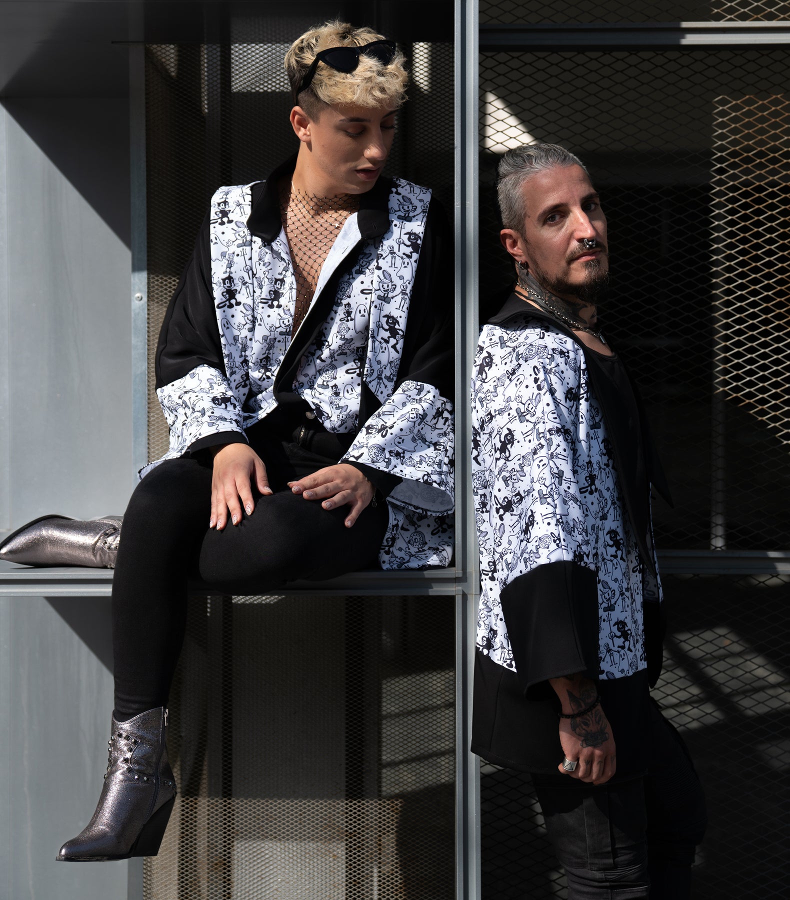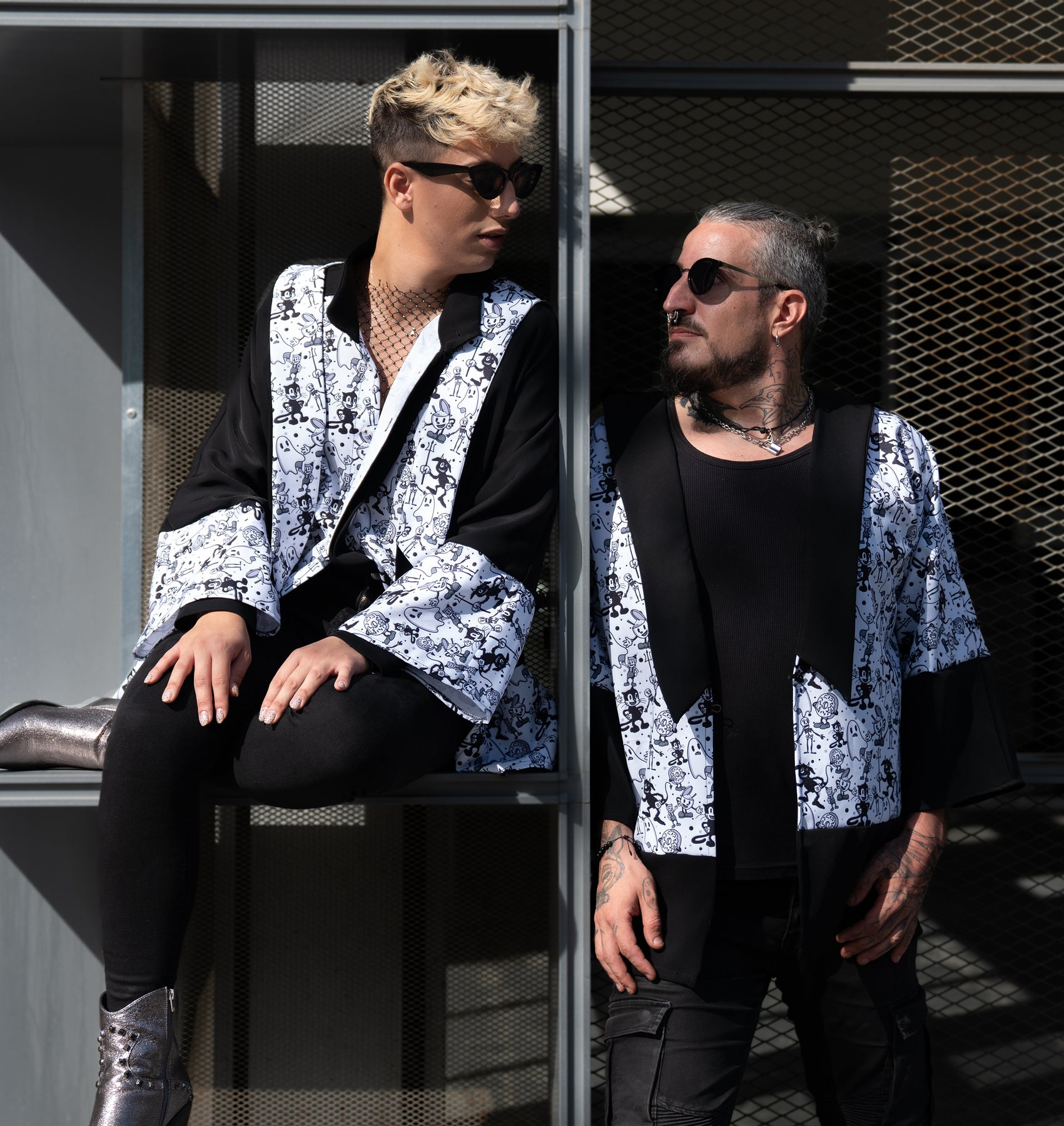 Kimono Vintage – Edición Animación Retro Halloween Envuelve tu estilo en un aire misterioso y encantador con este kimono exclusivo, inspirado en la estética de la animación clásica de los años 30.